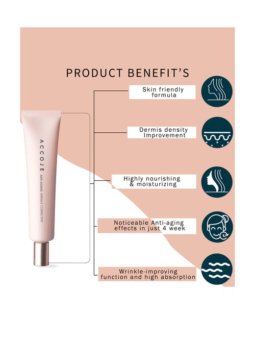 Η Accoje Anti-Aging Wrinkle Corrector ενισχύει την άνεση, την απαλότητα και τη φωτεινότητα της επιδερμίδας, με Marine Collagen, Peptides και Adenosine που προσφέρουν μια πιο υγιή και φρέσκια εικόνα.