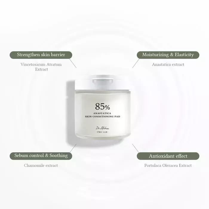 Το Dr. Althea Anastatica Skin Conditioning Pads ξεχωρίζει λόγω της υψηλής συγκέντρωσης εκχύλισματος Jericho Rose (85%) ένα φυτικό συστατικό που επιβιώνει σε ακραίες συνθήκες ξηρασίας στη φύση και προσφέρει ενυδάτωση και προστασία. Η διπλή όψη (exfoliating + smooth) αυξάνει την αποτελεσματικότητα χωρίς να ερεθίζει την επιδερμίδα.