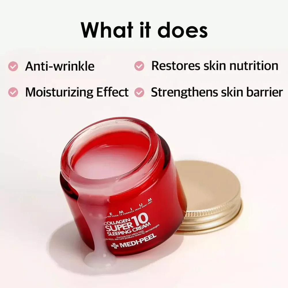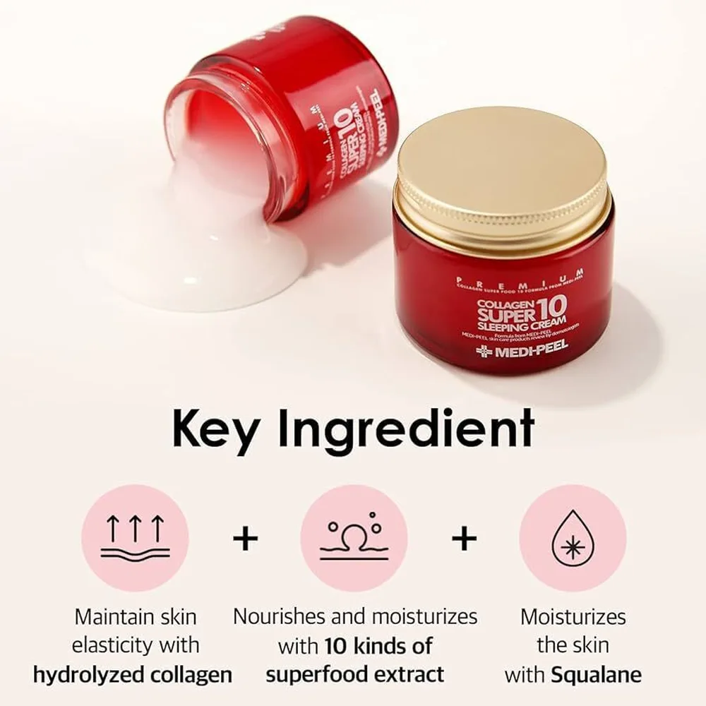 Απολαύστε βαθιά ενυδάτωση και αντιγηραντική φροντίδα με την κρέμα νυκτός Medi Peel. Περιέχει υαλουρονικό οξύ και κολλαγόνο για αναζωογόνηση και βελτίωση της ελαστικότητας της επιδερμίδας, ιδανική για ξηρά και ώριμα δέρματα κάθε βράδυ.