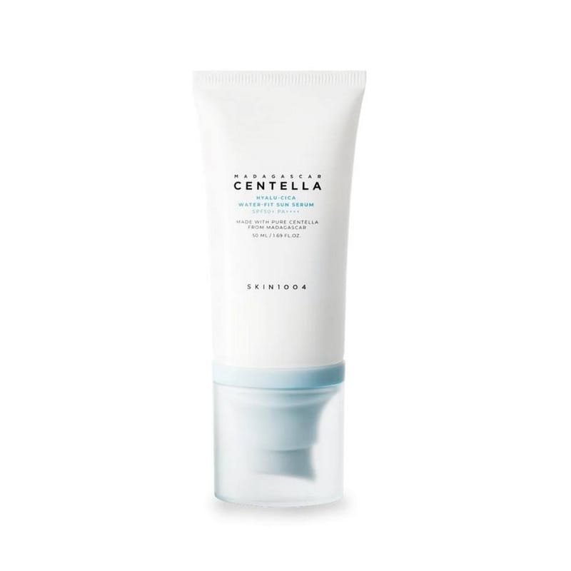 Το Skin1004 Madagascar Centella Hyalu-Cica Water-Fit Sun Serum SPF50+ ενυδατώνει και προστατεύει με Centella Asiatica, Υαλουρονικό Οξύ και Niacinamide για φρέσκια, δροσερή επιδερμίδα.