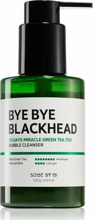 Το Some By Mi Bye Bye Blackhead Αφρός Καθαρισμού Προσώπου 120gr είναι ένας εξειδικευμένος καθαριστικός αφρός που στοχεύει στα μαύρα στίγματα, τους φραγμένους πόρους και την περίσσεια σμήγματος. Η φόρμουλα συνδυάζει φυτικά εκχυλίσματα, BHA και καταπραϋντικούς παράγοντες ώστε να καθαρίζει σε βάθος χωρίς να ξηραίνει ή να ερεθίζει την επιδερμίδα. Είναι σχεδιασμένος για καθημερινή χρήση, αλλά αρκετά αποτελεσματικός ώστε να βοηθά στην ορατή μείωση των μαύρων στιγμάτων και στην εξυγίανση των πόρων.