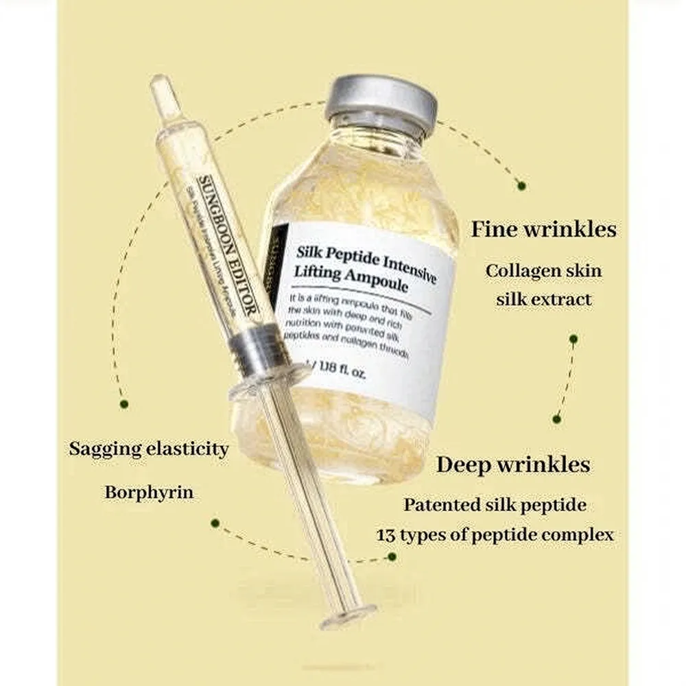 Το Sungboon Editor Silk Serum είναι ένας πρωτοποριακός ορός προσώπου σε μορφή μετάξινης υφής, ειδικά σχεδιασμένος με πεπτίδια για να προσφέρει ένα φυσικό αποτέλεσμα lifting. Σκοπός του είναι να ενισχύσει τη σφριγηλότητα και να βελτιώσει την υφή της επιδερμίδας, προσφέροντας ταυτόχρονα ενυδάτωση και θρέψη.